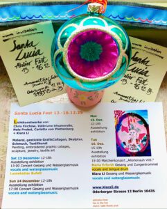 Tuesday 16.12.25 Santa Lucia Abrundung  15-19 exhibition 19h ALLERLEIRAUH Märchen Konzert Maria Erforth und Klara Li
